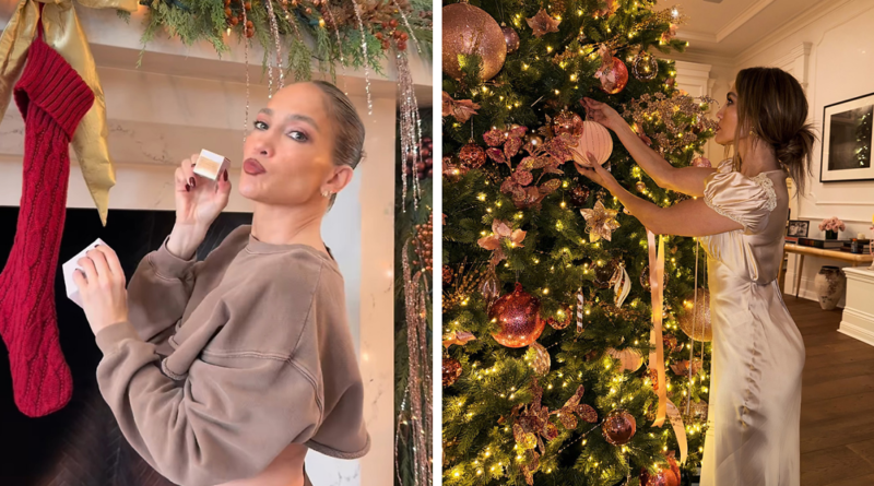- Jennifer Lopez compartilhou um vídeo de Natal promovendo produtos de sua linha JLo Beauty como recheios de meias.