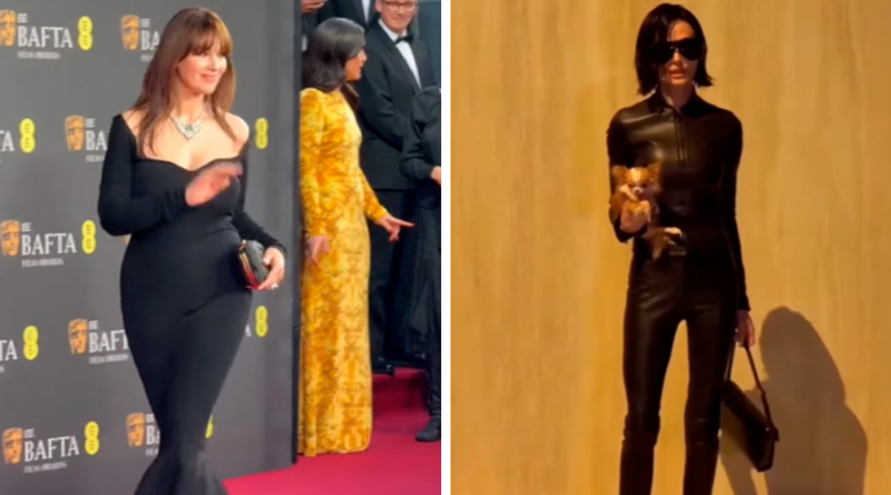 Muitas postagens virais no X compararam fotos recentes de Moura em uma jaqueta de couro preta justa, calças pretas justas, óculos escuros grandes e sapatos de salto alto com um visual de tapete vermelho de Bellucci.