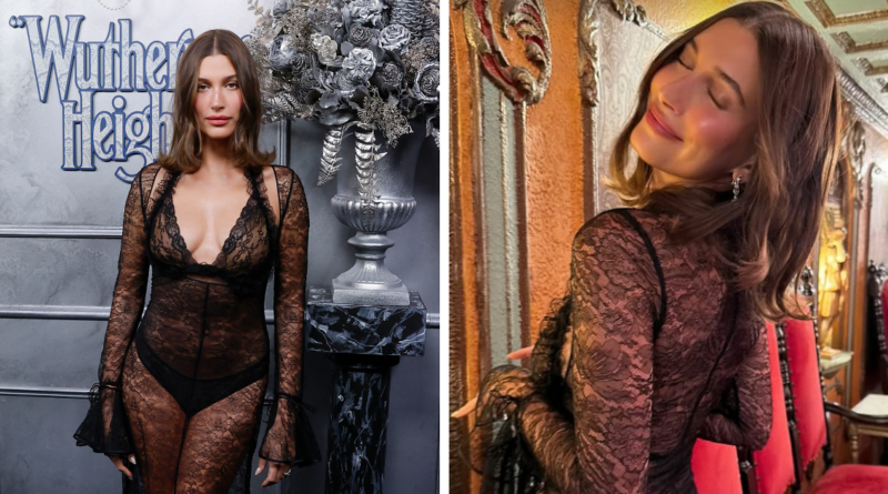 - Hailey Bieber usou um vestido de renda transparente na estreia de ‘O Morro dos Ventos Uivantes’ em Sydney.