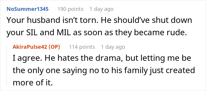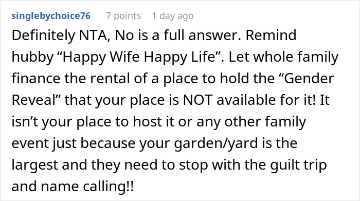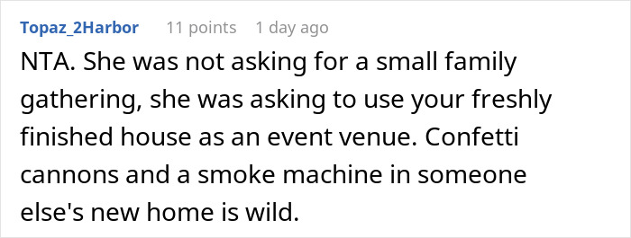 Então, quando o usuário do Reddit AkiraPulse42 e o marido terminaram a reforma da casa, o casal quis saborear. No entanto, a família do homem não permitiu.