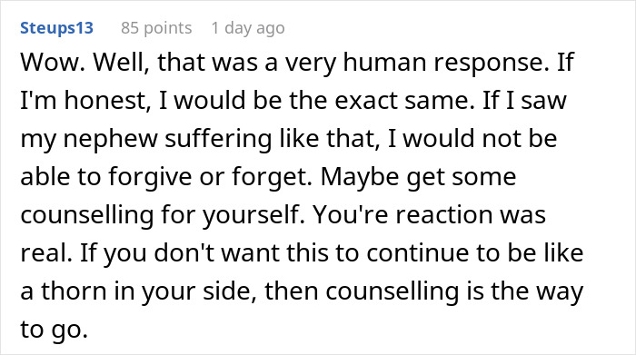 Os comentaristas ficaram do lado do autor, perguntando-se por que outros membros da família não se importam com o que Danny sente