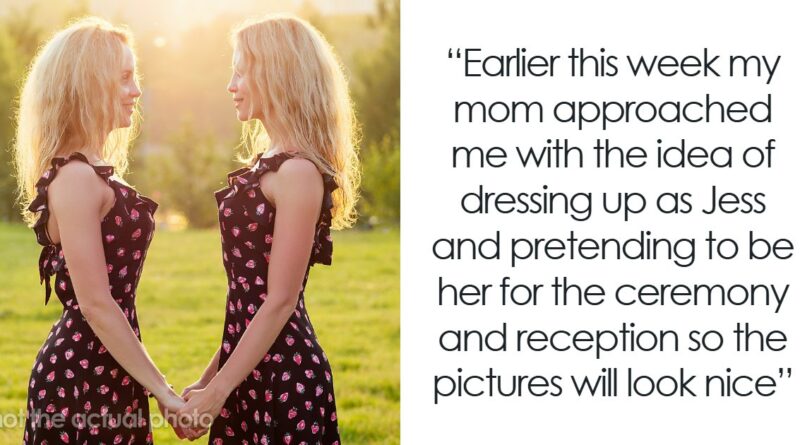 Um futuro próximo noiva sofreu um acidente pouco antes de seu grande dia que exigiu que ela fizesse uma cirurgia estética. Mas em vez de posar para fotos de casamento antes de se curar, sua mãe sugeriu que sua irmã gêmea pudesse substituí-la. Abaixo, você encontrará a história completa que a irmã gêmea compartilhado no Reddit, bem como algumas das respostas deixadas por leitores investidos.