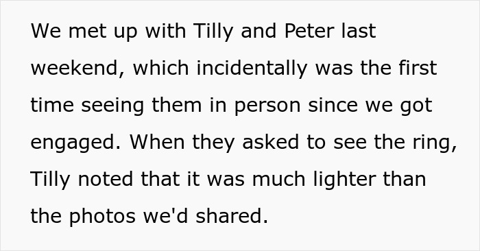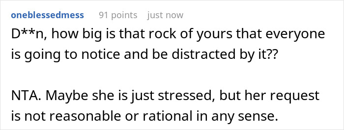 Mas uma mulher foi completamente pega de surpresa quando a noiva exigiu que ela chegasse sem o anel de noivado, alegando que a cor da pedra era muito parecida com a dos vestidos das damas de honra e roubaria a atenção da festa de casamento. Chocada com o pedido, ela recorreu Reddit para compartilhar sua história.