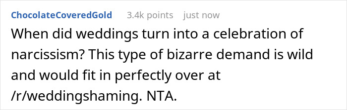 Mas uma mulher ficou chocada quando ouviu a exigência que a noiva tinha especificamente para ela.