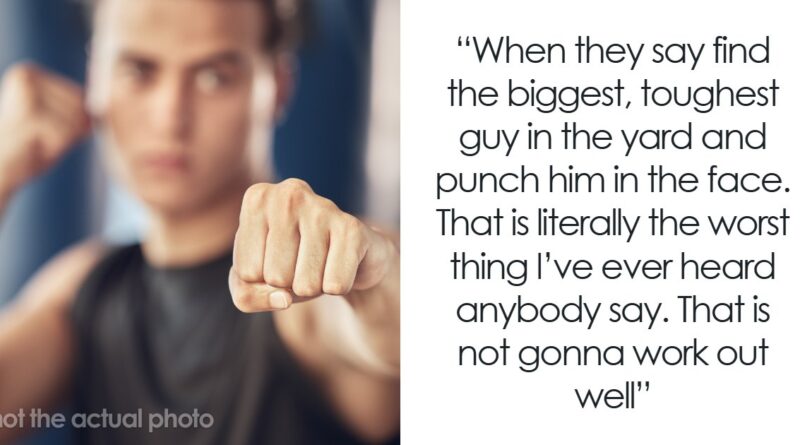 When they say find the biggest, toughest guy in the yard and punch him in the face. That is literally the worst thing I’ve ever heard anybody say. That is not gonna work out well. Even if you beat the biggest guy you’re just walking the world, you don’t understand and creating problems you can’t possibly imagine