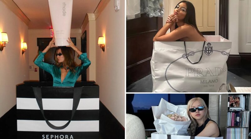 Justin BieberA esposa de subiu em uma bolsa da Sephora para promover sua marca de cuidados com a pele Rhode… enquanto Cindy parece ter esbanjado na Prada e Rosé pegou algumas malas da RIMOWA.