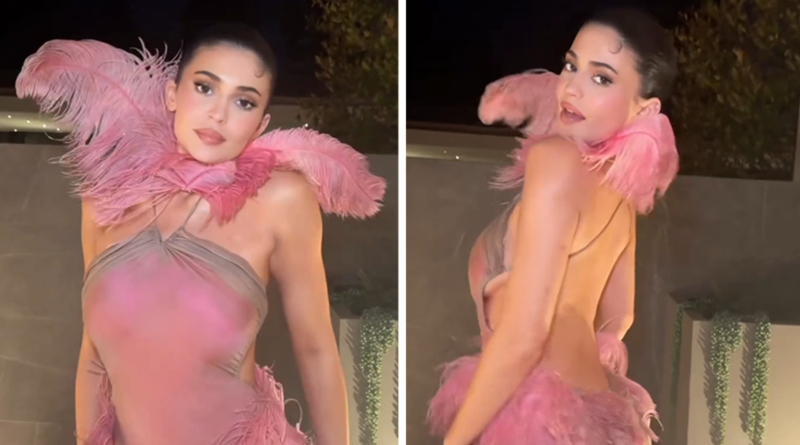 URGENTE: Kylie Jenner Shows Off Figure in Backless Feather Dress