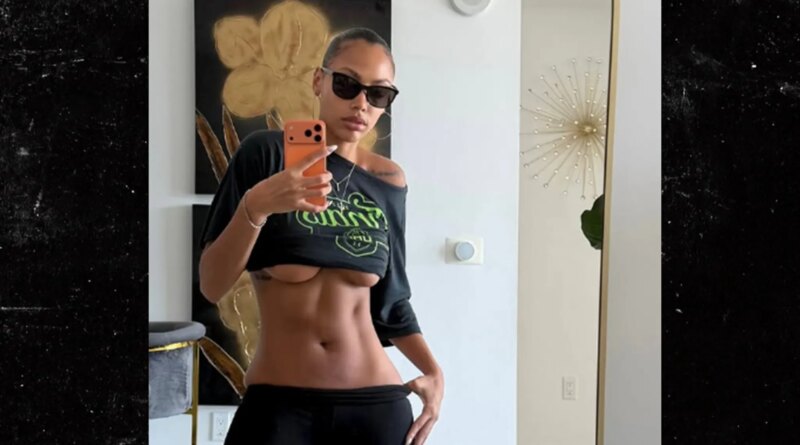 A ex-estrela da WNBA compartilhou seu ajuste no Instagram… com calças pretas e uma camisa de mangas 3/4 puxada para cima para expor seu abdômen.
