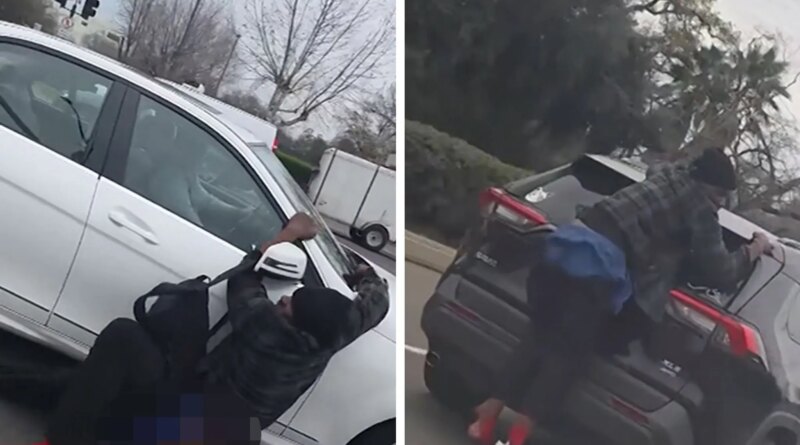 O vídeo se tornou viral de um homem em Sacramento que aterrorizava motoristas desavisados, pendurando-se em carros em movimento no trânsito intenso… com a bunda nua à mostra.
