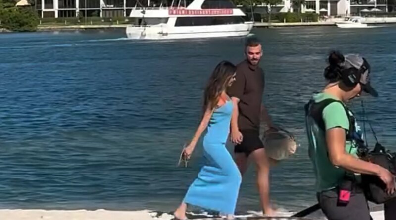 Uma usuária do Instagram postou uma filmagem que ela filmou Taylor Frankie Paulo em um encontro com um de seus pretendentes, caminhando por uma praia que aparentemente era toda deles naquele dia.